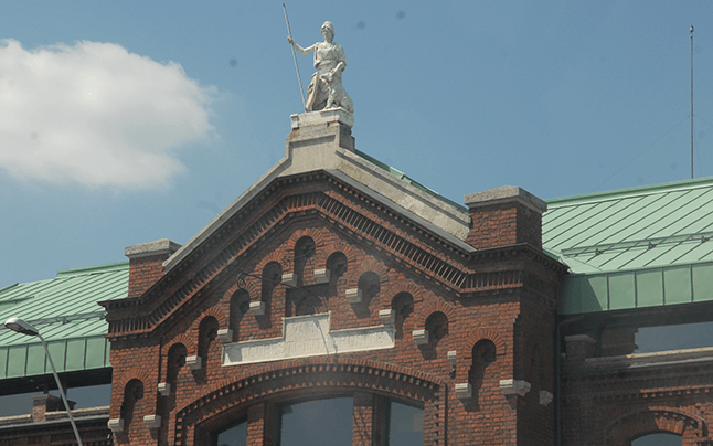 Una dintre clădirile din anii 70 este în stare foarte bună, fiindcă a fost transformată în magazin de bricolaj cu o arhitectură ridicolă, în culori stridente, ce preia prin pastisă detalii de la Vama Antrepozite.
